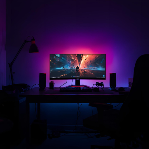 - LED Strip Lights – Stick them behind your monitor or along your shelves for a soft, ambient glow.