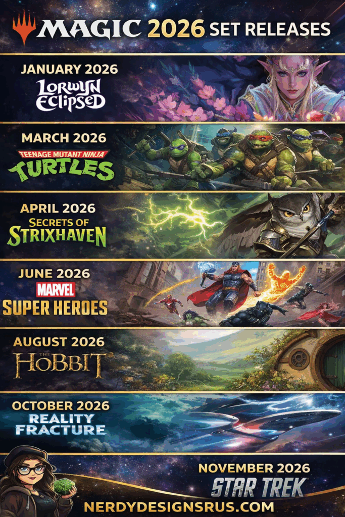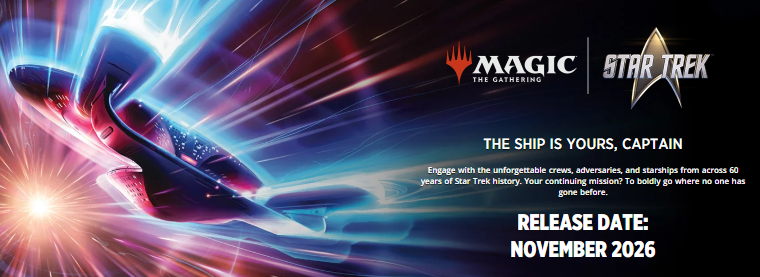 Boldly go where no Planeswalker has gone before! Wizards is celebrating Star Trek’s 60th anniversary with a dedicated MTG set featuring iconic captains, starships, and adventures from across Trek history. Expect spaceship mechanics, exploration themes, and plenty of nostalgia for fans of the final frontier.